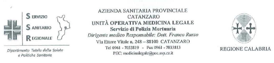 ASP CZ-U.O. Medicina Legale-Indicazioni sulle modalità di intervento in occasione di decesso per COVID-19