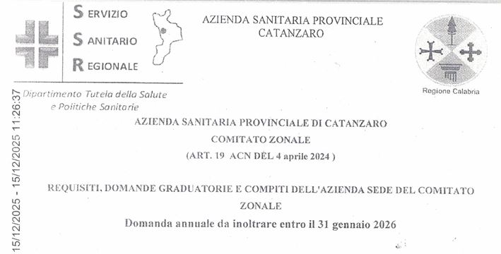 ASP CZ-Domanda per l'inserimento o aggiornamento, nelle graduatorie degli specialisti ambulatoriali da far valere per l'anno 2027